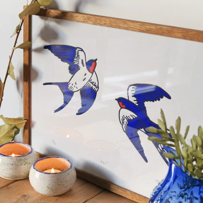 Duo Limba Wood Frame Linocut Print