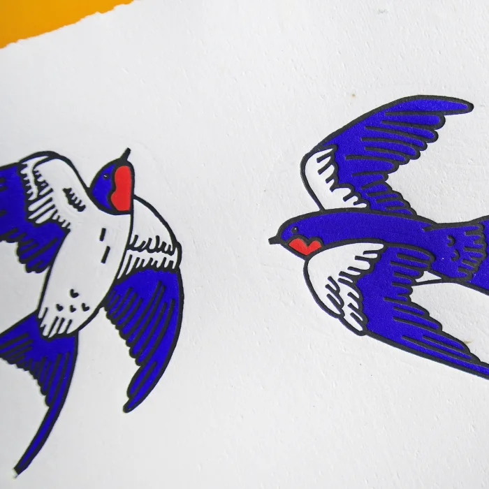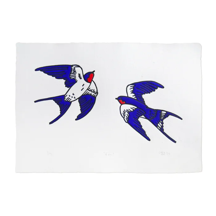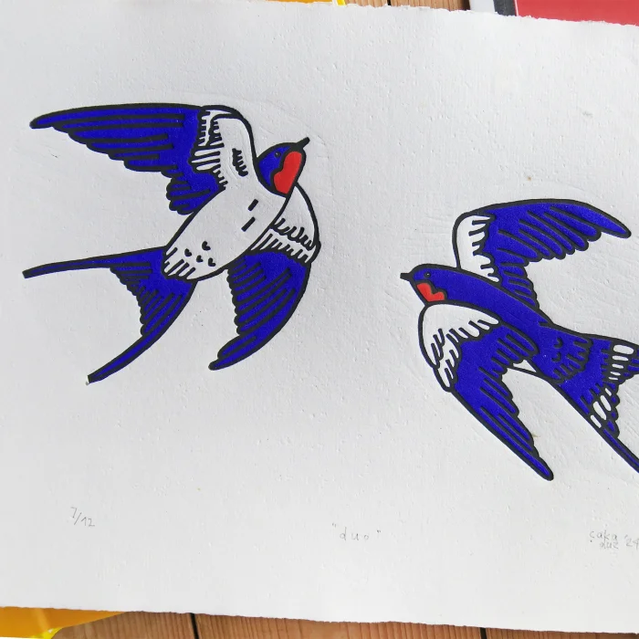 "duo" Dovetail linocut print.