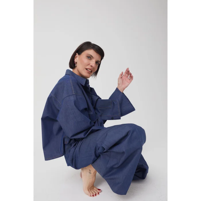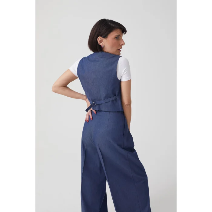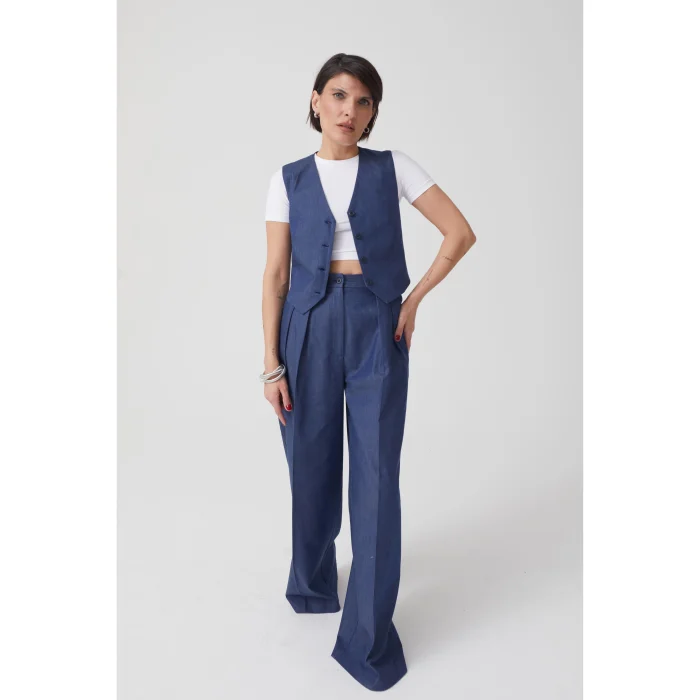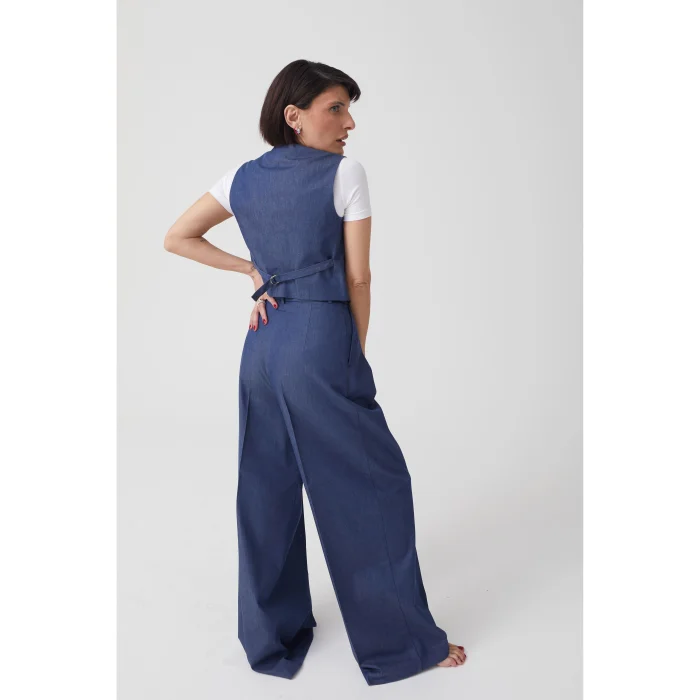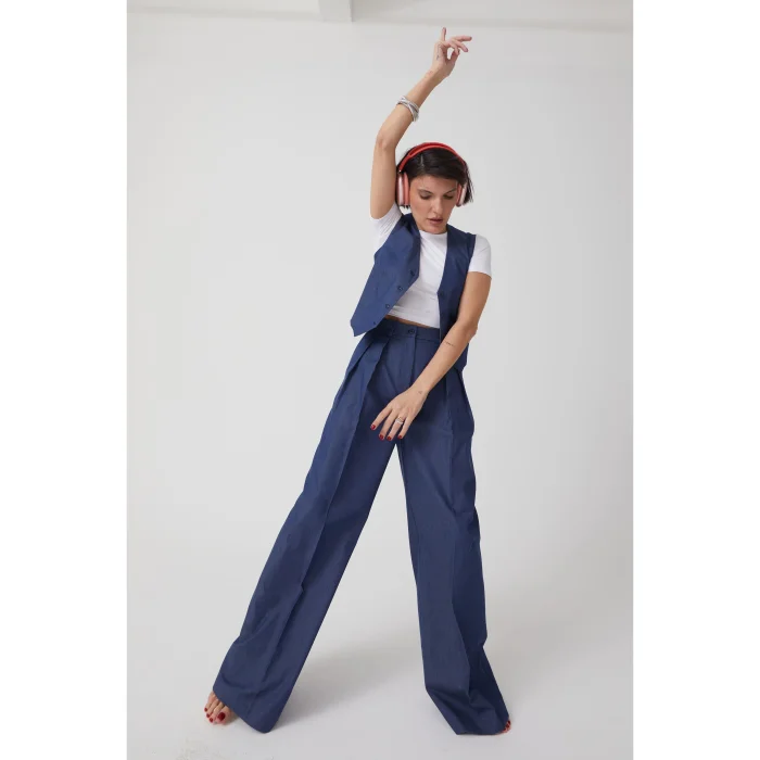 Product: Wide Leg Pleated Denim Fabric Trousers