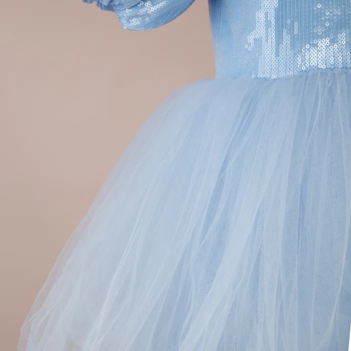 This dress, which will add joy to your little princess's special moments, came to life with Chimommy's careful design approach. With its watermelon sleeve cutout, sequin-embroidered bodice, and layered blue tutu skirt, it offers both freedom of movement and a unique sparkle. The special sequin woven fabric takes comfort to the highest level, while the blue tutu skirt creates a dreamy effect with every step.