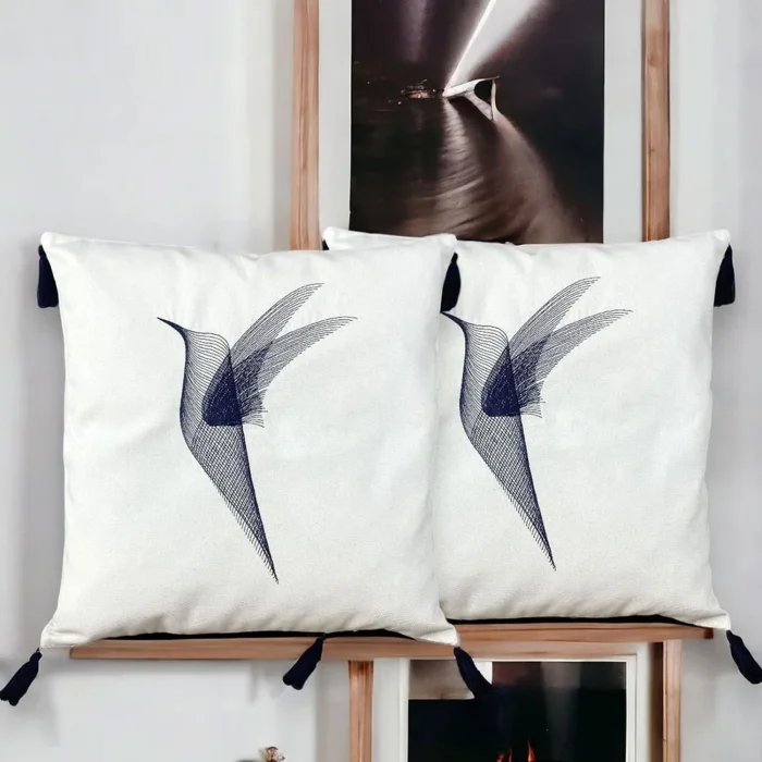 Product: Embroidered Tasseled Cotton Decorative 2-piece Throw Pillow / Pillow Case - Bird