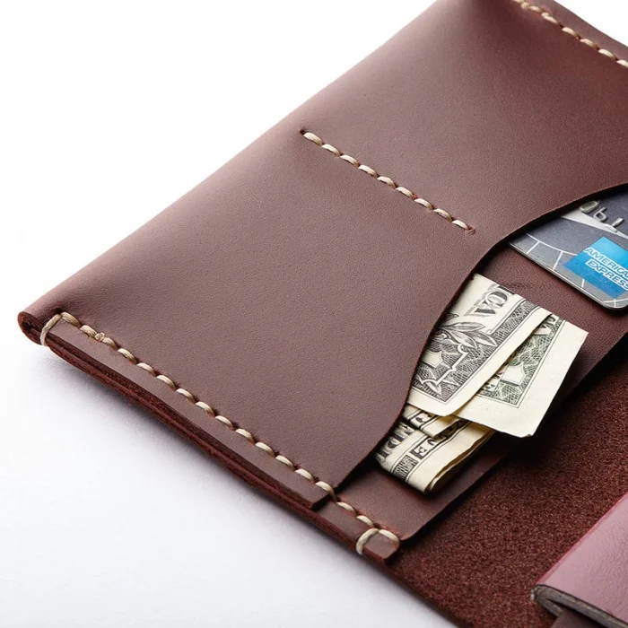 All pieces are cut from cowhide and are saddle-stiched with waxed thread by hand. Custom copper hardware has been used to improve the ease of usage and the durability of our products.