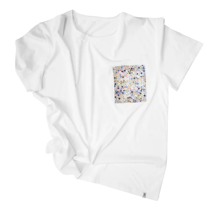Material: 100% Cotton Maintenance: 30 degrees in the machine, steam iron, do not throw it to dry, hang it to dry. Model Dimensions: Height: 1.89cm / Bust: 95 cm / Waist: 75 cm / Hips: 96 cm / Neckline: 40 / Size L T-shirt with crispy floral print linen pockets. Oversize cut.