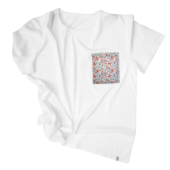 Material: 100% Cotton Maintenance: 30 degrees in the machine, steam iron, do not throw it to dry, hang it to dry. Model Dimensions: Height: 1.89cm / Bust: 95 cm / Waist: 75 cm / Hips: 96 cm / Neckline: 40 / Size L T-shirt with crispy floral print linen pockets. Oversize cut.