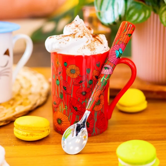 Whether it's milk or black coffee, this mug will perfectly brighten up your day when you're at work or on your couch. You can add some honey or sugar using our patterned spoon. Made from porcelain, it won't lag behind our range of teapots and insulated bottles. Rock solid, microwave and dishwasher safe. Materials of Making: Chinese porcelain Dimensions: 7.2 x 10.2 cm Usage: Microwave safe, dishwasher safe Capacity: 30 cl