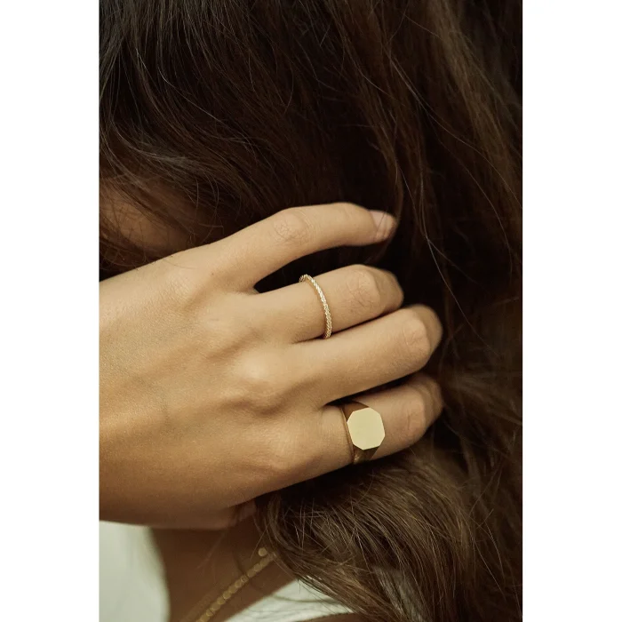 The ring is 14-karat yellow gold. There are rows of zircon stones on it. The 9 sizes of the ring weigh about 1 g. According to different sizes, the weight of the ring may vary slightly.