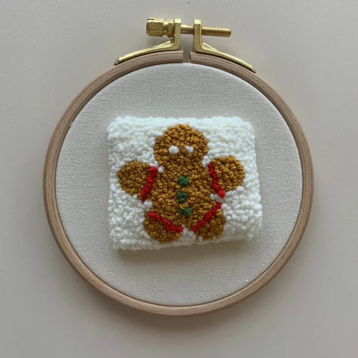 Cookie Man Punch Embroidery Hoop Wall DecorIt is completely hand embroidered.