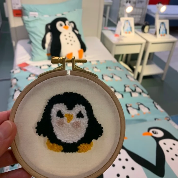 Penguin punch embroidery hoop wall décor