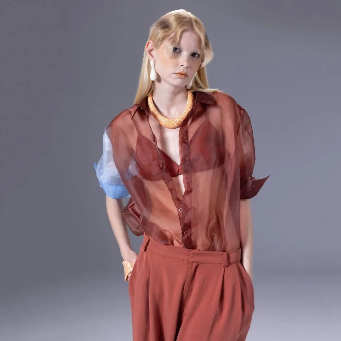 Product: Terra Cota Organza Puzzle Shirt