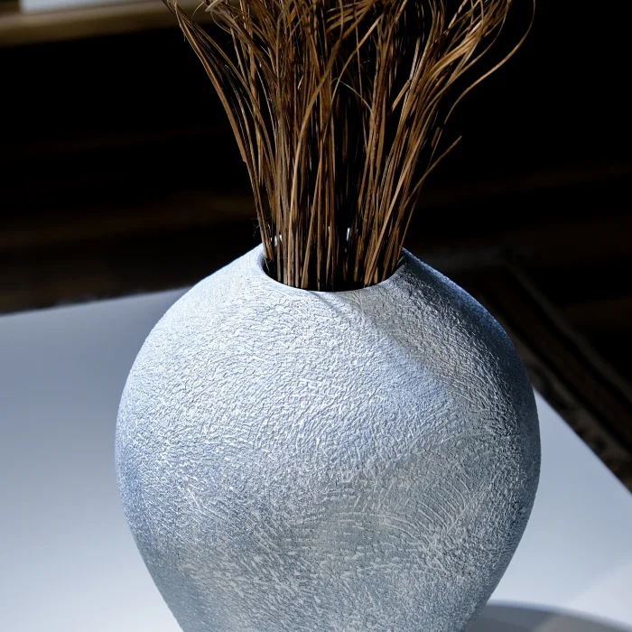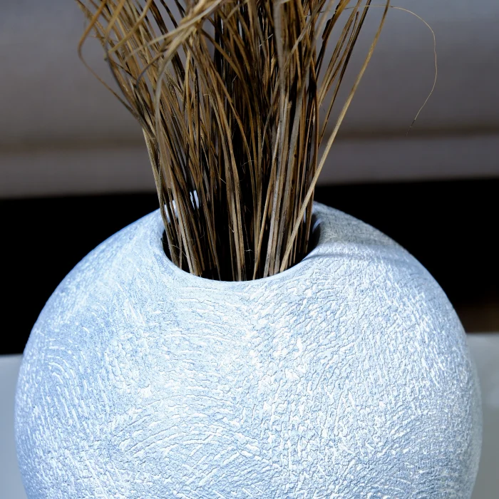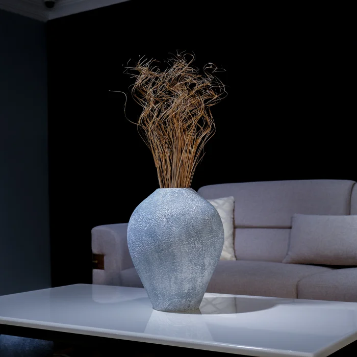 This terracotta vase is designed with a special asymmetrical line texture and light gray gradations on a white background. Inspired by the essence of nature, this vase is the ideal choice to create a modern and stylish atmosphere. Feature highlights: 1. Asymmetrical Line Texture: The special asymmetrical line texture on the surface of the vase adds dynamism and uniqueness to the product. Each line emphasizes the character of the vase. 2. White and Gray Transitions: Light gray tones on a white background give the vase an elegant modernity and natural touch. Color transitions add depth and visual appeal to the product. 3. Terracotta Durability: Terracotta material is known for its durability and naturalness. This vase offers long-lasting use and aesthetic durability. 4. Various Uses: With different size options, it can be used in various places such as living room, bedroom or office. This terracotta vase adds a unique beauty to your home with its asymmetrical line texture and white-gray transitions. By adding it to your cart now, experience the elegance of nature and add a modern touch to your space.