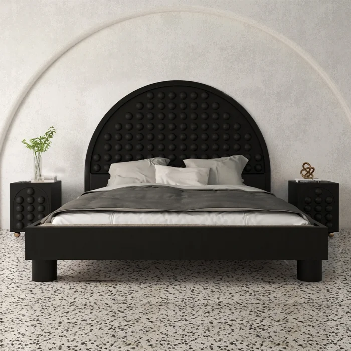 Product Dimensions: Width: 198 cm x Depth: 200 cm x Sitting Height: 75 cm (These dimensions are specified for a 180x200 cm bed. Please contact us for beds of different sizes.)Product: Curve Bed Headboard And Base-black
