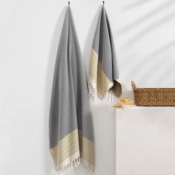Peshtemal, the original design of Denizli Concept, is a modern interpretation of the traditional Turkish loincloth. With its soft cotton texture and elegant tassels, it takes post-bath comfort to the next level. With its lightness, elegance and comfort, you will feel the quality in every detail.