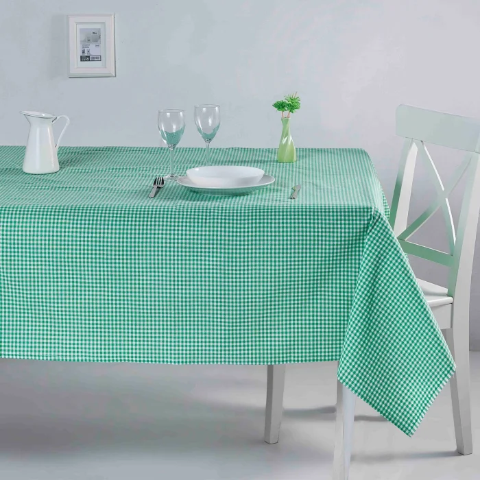gingham green tablecloth; The Checkered Pattern measures 0.5 x 0.5 cm. The green tablecloth is suitable for daily use. It is an indispensable product for your breakfast tables, picnics and garden use. Its yarn is dyed, woven, and the edges are stitched; Fabric: 100% Cotton; Size: 170x220 cm; Package Includes: 1 Piece Green tablecloth Our product is OEKO-TEX certified. ; Why Should I Buy Oeko-Tex Certified Products? - Oeko-Tex certified products are products that have successfully passed all tests and approved according to international standards. - It does not contain carcinogenic and allergenic materials. It does not irritate the skin and does not harm human health.