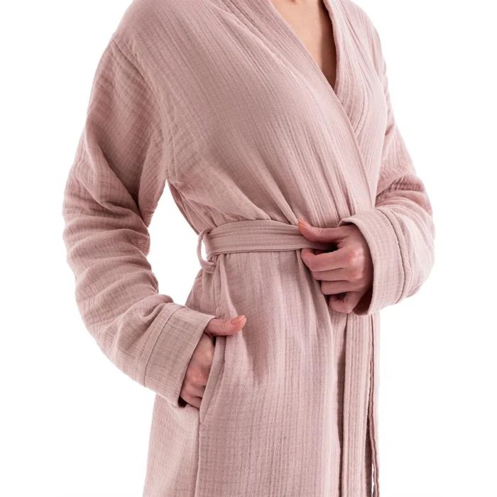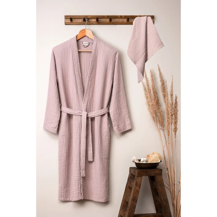 4 Layers Muslin Bathrobe + Towel Set Muslin bathrobe is made of 1st quality 100% cotton yarn. It has been washed and will retain its softness as it is washed. It has an effect appearance. Since the fabric is breathable, it has high moisture absorbency after bathing and dries quickly. Towel Size: 50x100 cm Package Included: 1 Bathrobe + 1 Head Towel Fabric: 100% Cotton Why Muslin Bathrobe? Muslin bathrobes are suitable for long-term use with their soft texture and quality fabric. It does not irritate your skin during drying. With the 4-layer weaving technique, it is ensured that it is both soft and breathable by preventing sweating. Our product is OEKO-TEX certified. Why Should I Buy Oeko-Tex Certified Products? - Oeko-Tex certified products are products that have successfully passed all tests and approved according to international standards. - It does not contain carcinogenic and allergenic materials. It does not irritate the skin and does not harm human health.