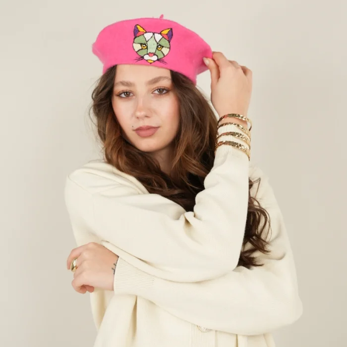 Product: Graphic Cat Embroidered French Beret