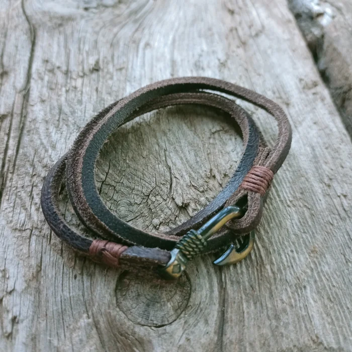 The brass hook closure offers the perfect balance both functionally and aesthetically. The non-tarnishing brass acquires a natural patina over time over the life of the bracelet, giving it a special character. The hook, which can be easily attached and removed, provides comfort in use and guarantees that the wristband stays securely in place.