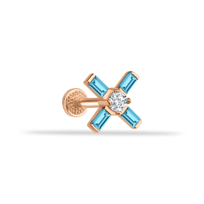 Product: 14k Gold Aqua Baguette Stone Minimal Tragus Piercing