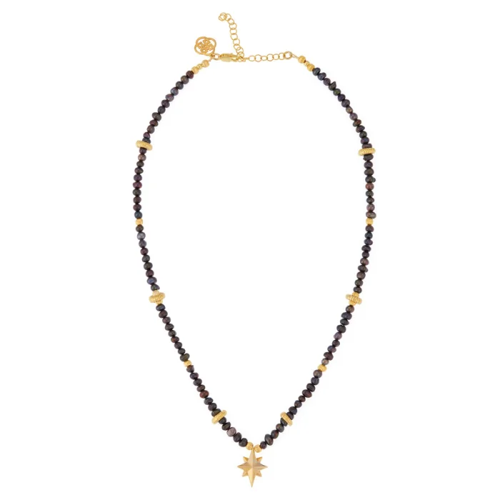 Inspired by the brightest star in the sky, the northern star necklace is combined with natural black pearl stones to achieve a simple but powerful look. It provides an easy transition from day to night with its unique and dynamic appearance. It allows buyers to create their own combinations with different stone options.