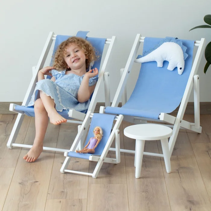 - Two-stage solid wood fun white children's lounge seat. Dino pillow and cushion included. You can use our children's chair in both ways, reclining backwards and upright in a sitting position. Open-Close & Disassembled-Mounted.