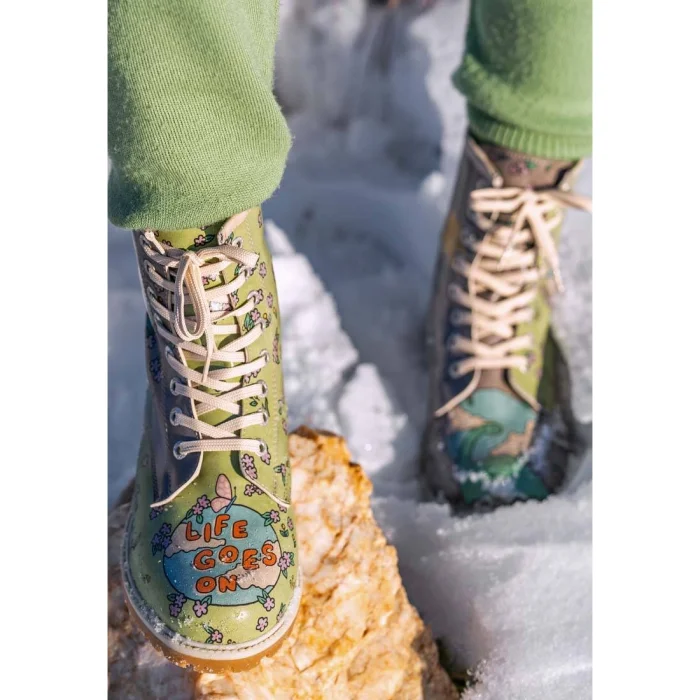 Product: Women Vegan Leather Green Long Boots - Life Goes On Design