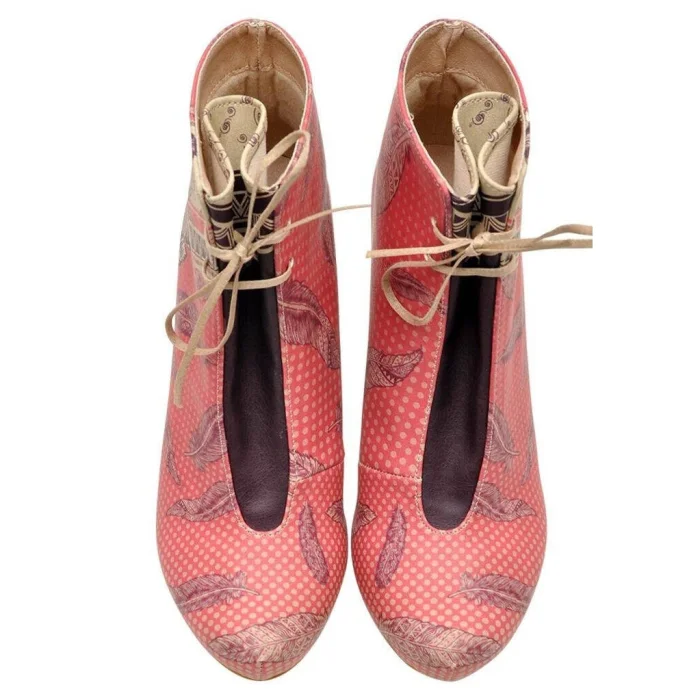 Product: Women Vegan Leather High Heel Boots - Feathers Design