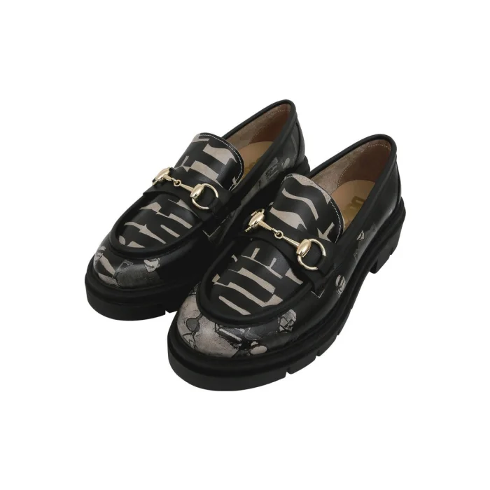 Product: Women Vegan Leather Loafers - Supper Blackwhite Design