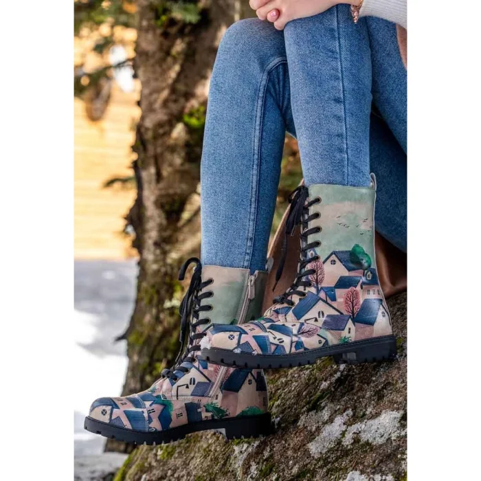 Product: Women Vegan Leather Long Boots - Buildings Design