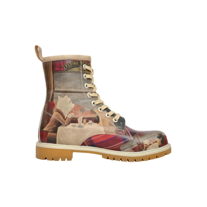 Product: Women Vegan Leather Long Boots - Scottish Dining Car Design