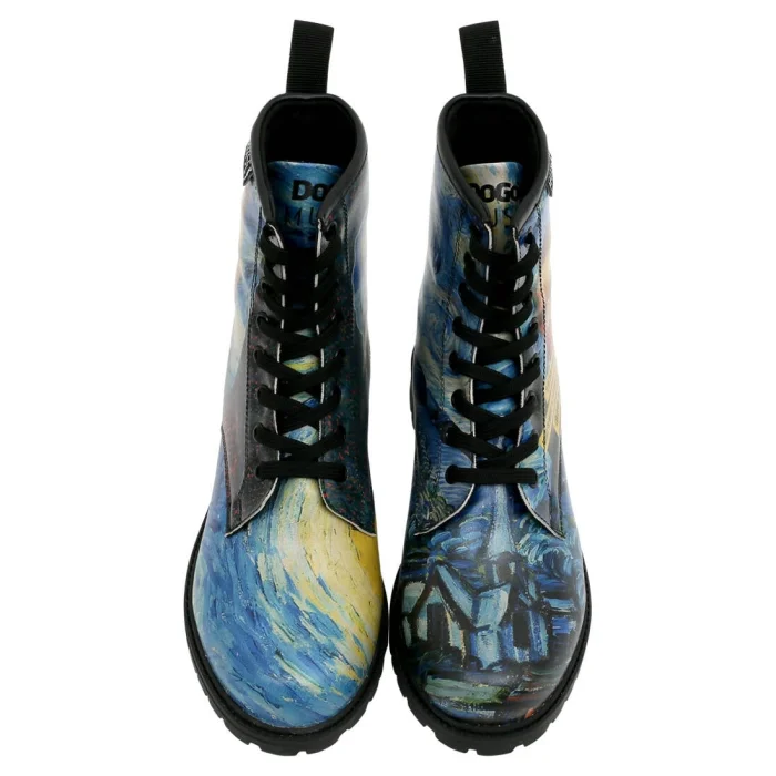 Women Vegan Leather Long Boots - Vincent Van Gogh The Starry Night Collage Muse Design