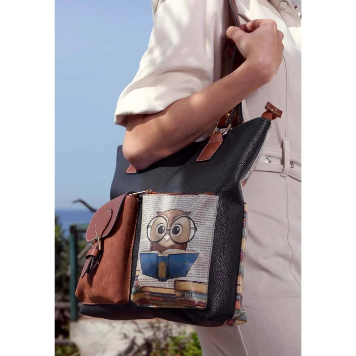 Product: Women Vegan Leather Shoulder Bag - The Wise Owl Design