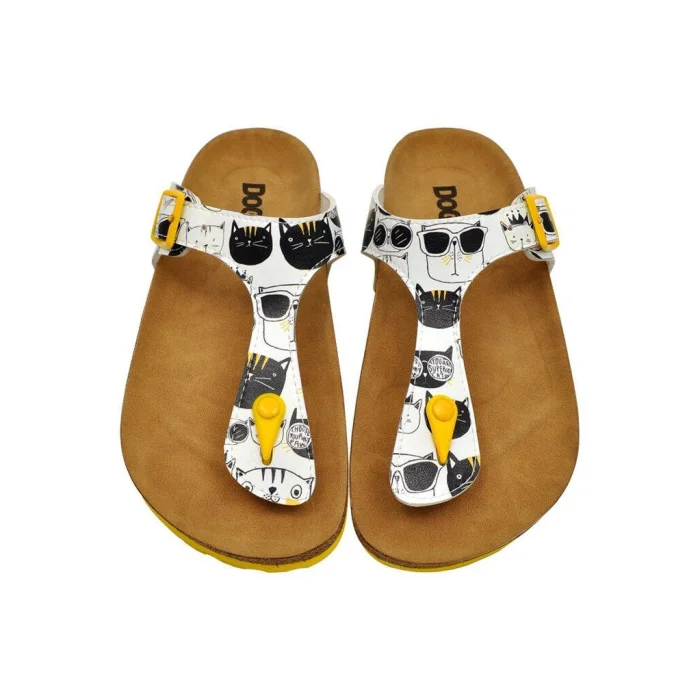 Product: Women Vegan Leather Slippers - Monochrome Cats Design
