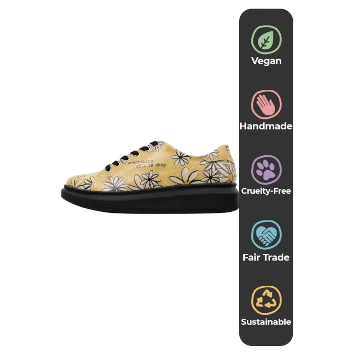 Product: Women Vegan Leather Sneakers - Everything Will Be Okay Design