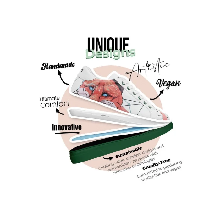 Product: Women Vegan Leather Sneakers - Red Fox Design