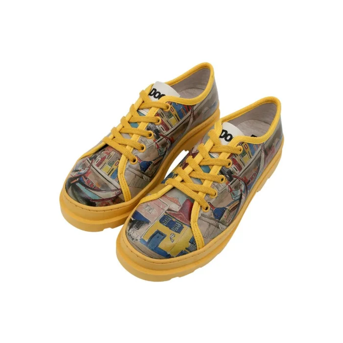Product: Women Vegan Leather Sneakers - Sunsets And Silhouettes Design