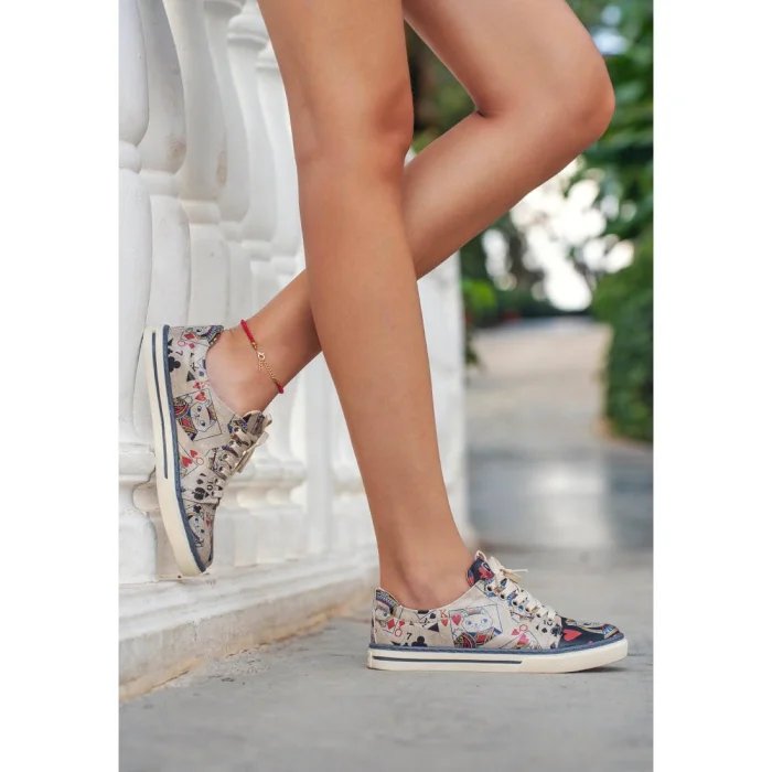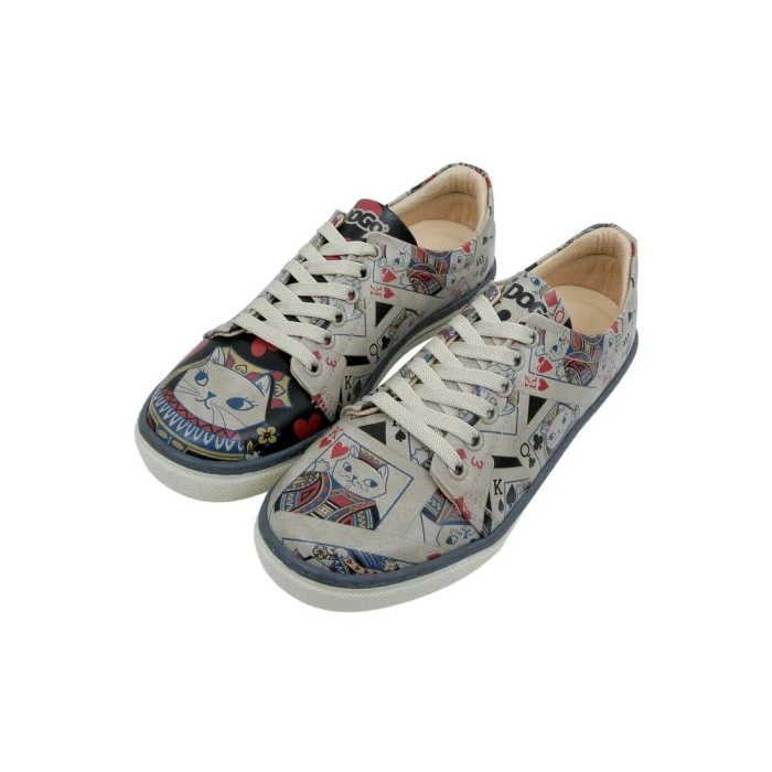 Product: Women Vegan Leather White Sneakers - Queen Of Meows Design