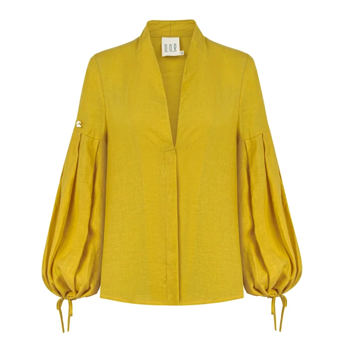 Long balloon sleeve, v-neck shirt