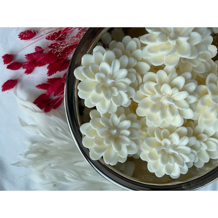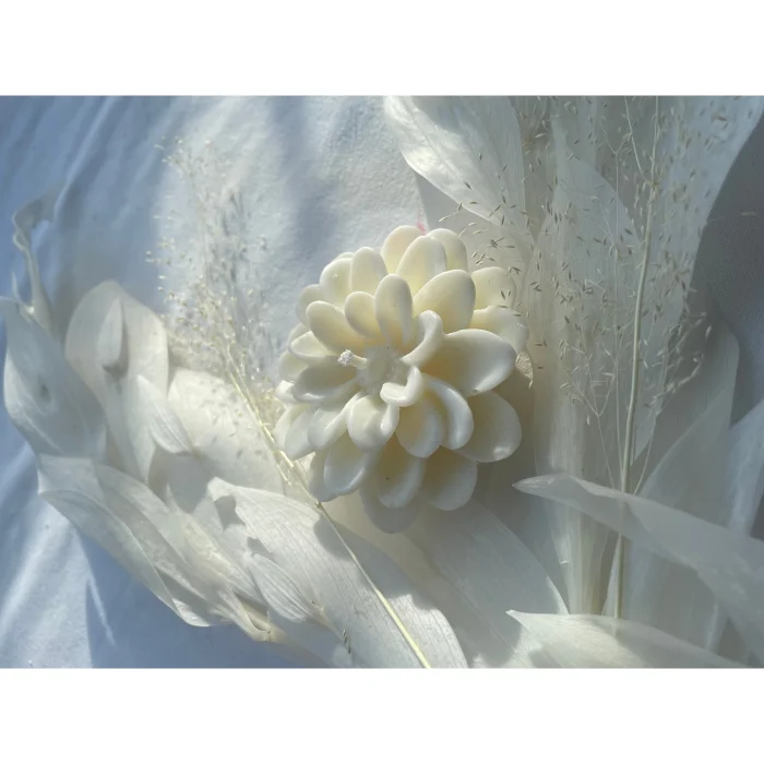 It is about 6.5 cm wide, pure soy-ecru in color and has a slightly calming floral scent.