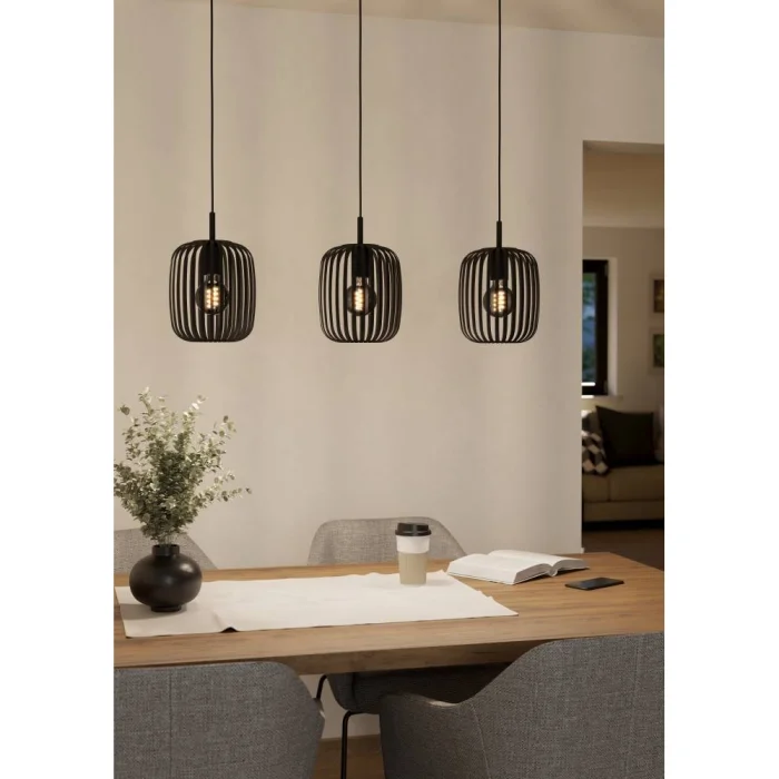Bulb Holder Type: E27 Maximum Wattage: 3X40W Product Height: 110 cm Product Length: 90 cm Product Width 20 cm Net Weight: 4.45 Kg Main Material: Steel Main Color: Black IP Status: IP20 Switch Type: Wall Switch Product Voltage: 220-240V,50/60Hz