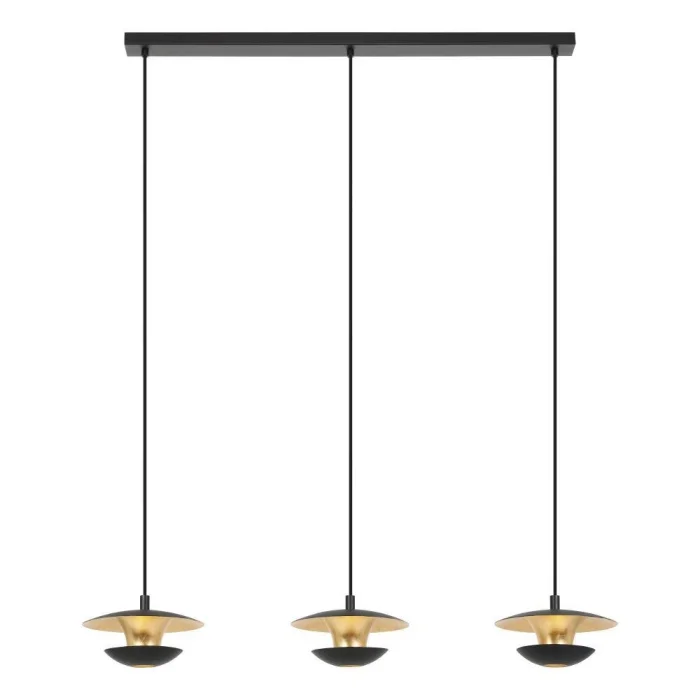 Bulb holder type: GU10-LED Maximum wattage: 3X4.5W bulb included. Product Height: 110 cm Product Length: 98.5 cm Product Width 22.5 cm Net Weight: 3.81 Kg Main Material: Steel Main Color: Black, Gold Kelvin: 3000K IP Status: IP20 Switch Type: Wall Switch Product Voltage: 220-240V,50/60Hz