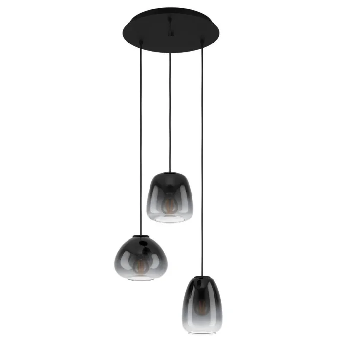Bulb Holder Type: E27 Maximum Wattage: 3X40W Product Height: 110 cm Product Diameter: 43 cm Net Weight: 3.75 Kg Main Material: Steel Main Color: Black Glass/Hat Material: Vaporized Glass Glass/Hat Color: Black-Grey-Transparent IP Status: IP20 Switch Type: Wall Switch Product Voltage: 220-240V,50/60Hz