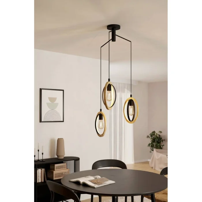 Bulb Holder Type: E27 Maximum Wattage: 3X40W Product Height: 130 cm Product Diameter: 61.5 cm Net Weight: 3.91 Kg Main Material: Steel, Wood Main Color: Black, Brown IP Status: IP20 Switch Type: Wall Switch Product Voltage: 220-240V,50/60Hz