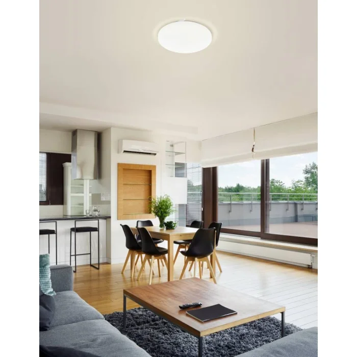 Bulb Holder Type: LED Maximum Wattage: 12W Bulb Included. Product Height: 5.5 cm Product Diameter: 30 cm Net Weight: 0.7 Kg Main Material: Steel Main Color: White Glass/Hat Material: Plastic Glass/Hat Color: White Kelvin: 2700-6500K Lumens: 1050 IP Status: IP20 Functions: Cct, Control by Remote Control, Including Remote Control Switch Type: Wall Switch Product Voltage: 220-240V,50/60Hz