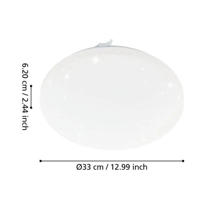 Bulb Holder Type: LED Maximum Wattage: 14.6W Bulb Included. Product Height: 7 cm Product Diameter: 33 cm Net Weight: 0.68 Kg Main Material: Steel Main Color: White Glass/Hat Material: Plastic Glass/Hat Color with Crystal Effect: White Kelvin: 3000K Lumens: 1600 IP Status: IP20 Switch Type: Wall Switch Product Voltage: 220-240V,50/60Hz