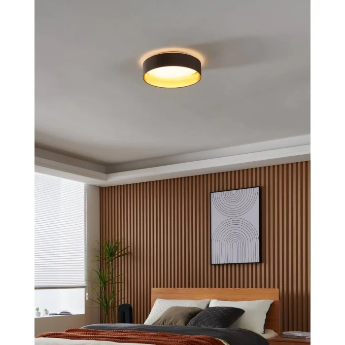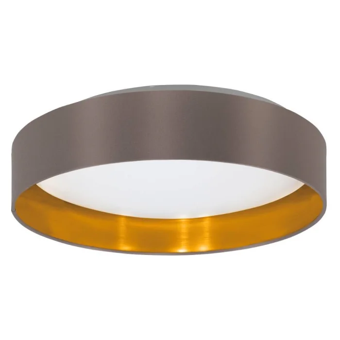 Bulb Holder Type: LED Maximum Wattage: 20W Bulb Included. Product Height: 9 cm Product Diameter: 38 cm Net Weight: 1.21 Kg Main Material: Plastic, Steel Main Color: White Glass/Hat Material: Textile Fabric Glass/Hat Color: Cappuccino, Gold Kelvin: 3000K Lumens: 2400 IP Condition: IP20 Switch Type: Wall Switch Product Voltage: 220-240V,50/60Hz