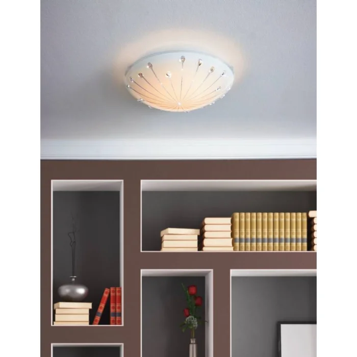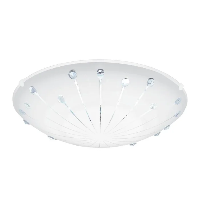 Bulb Holder Type: LED Maximum Wattage: 11W Bulb Included. Product Height: 9.5 cm Product Diameter: 31.5 cm Net Weight: 1.35 Kg Main Material: Steel Main Color: White Glass/Hat Material: Glossy Glass Glass/Hat Color: Granny White, Transparent Kelvin: 3000K Lumens: 950 IP Status: IP20 Switch Type: Wall Switch Product Voltage: 220-240V,50/60Hz