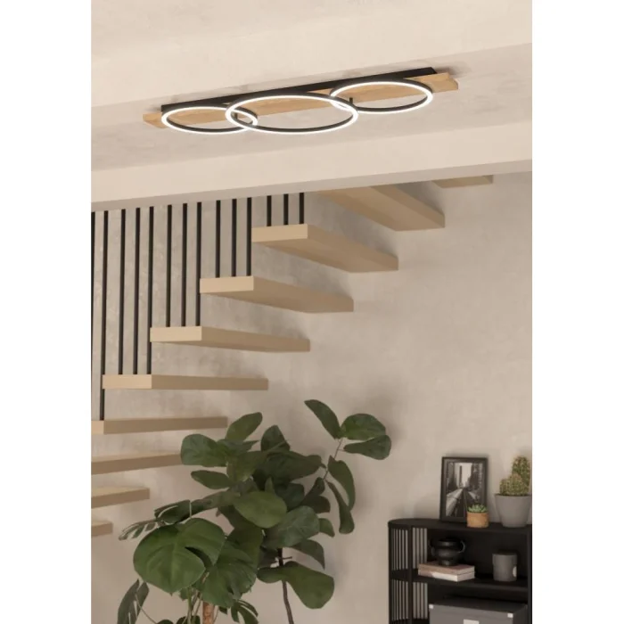 Bulb holder type: LED/LED maximum wattage: 2X12W/1X12W bulb included. Product Height: 9.5 cm Product Length: 101 cm Product Width 40 cm Net Weight: 3.76 Kg Main Material: Steel, Wood Main Color: Black, Brown Glass/Hat Material: Plastic Glass/Hat Color: White Kelvin: 3000K Lumens: 3400/1700 IP Condition: IP20 Switch Type: Wall Switch Product Voltage: 220-240V,50/60Hz