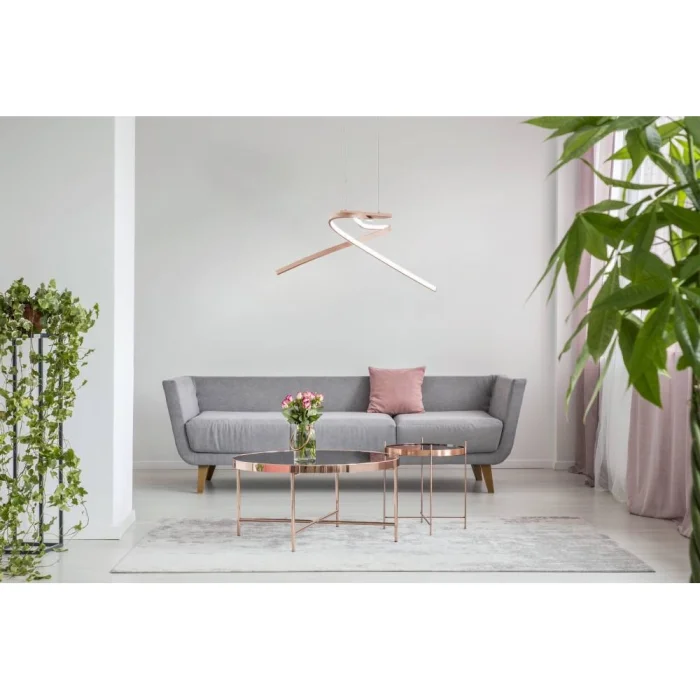 Bulb Holder Type: LED Maximum Wattage: 19W Bulb Included. Product Height: 110 cm Product Length: 70.5 cm Product Width 31.5 cm Net Weight: 1.76 Kg Main Material: Aluminum Main Color: Rose Gold Glass/Hat Material: Plastic Glass/Hat Color: White Kelvin: 3000K Lumens: 2600 IP Status: IP20 Switch Type: Wall Switch Product Voltage: 220-240V,50/60Hz