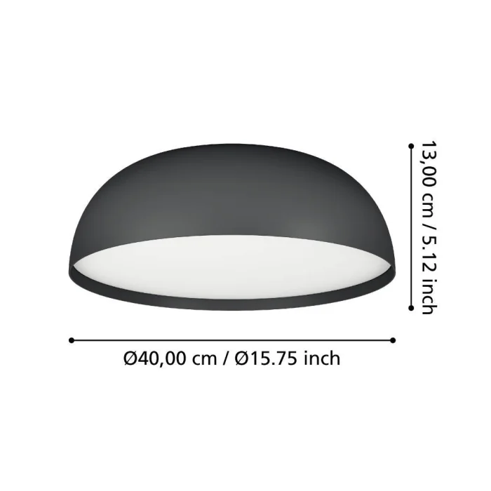Bulb holder type: LED Maximum wattage: 3X7.5W bulb included. Product Height: 13 cm Product Diameter: 40 cm Net Weight: 2 Kg Main Material: Aluminum, Steel Main Color: Black, White Glass/Hat Material: Plastic Glass/Hat Color: White Kelvin: 2700-6500K Lumens: 2700 IP Status: IP20 Switch Type: Wall Switch Product Voltage: 220-240V,50/60Hz