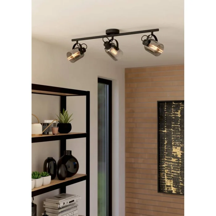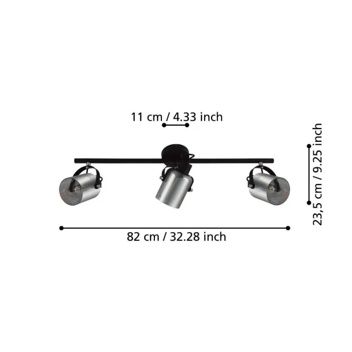 Bulb Holder Type: E27 Maximum Wattage: 3X40W Product Length: 77.5 cm Product Width 11 cm Net Weight: 2.4 Kg Main Material: Steel Main Color: Black, Chrome Glass/Hat Material: Vaporized Glass Glass/Hat Color: Black-Transparent IP Status: IP20 Switch Type: Wall Switch Product Voltage: 220-240V,50/60Hz