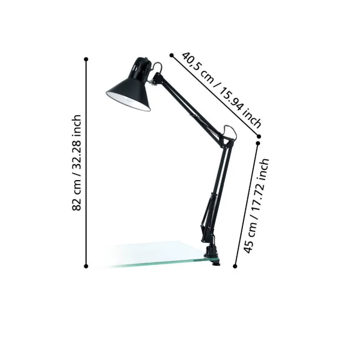 Bulb Holder Type: E27 Maximum Wattage: 1X40W Product Length: 73 cm Net Weight: 0.87 Kg Main Material: Steel, Plastic Main Color: Glossy Black IP Status: IP20 Switch Type: Body Switch Product Voltage: 220-240V,50/60Hz